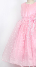 スカート部分のオーガンジーの小花柄はプリントではなく、模様が立体的に見えるフロッキー加工ですので、